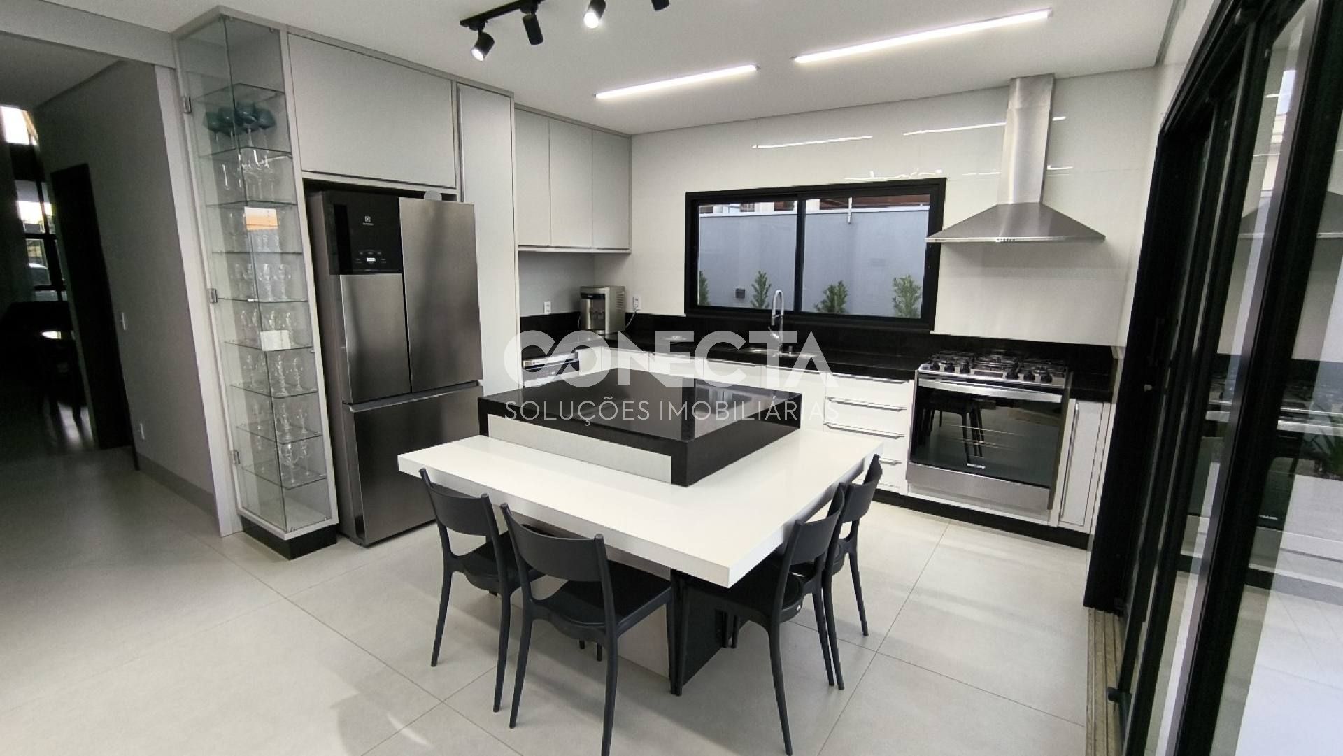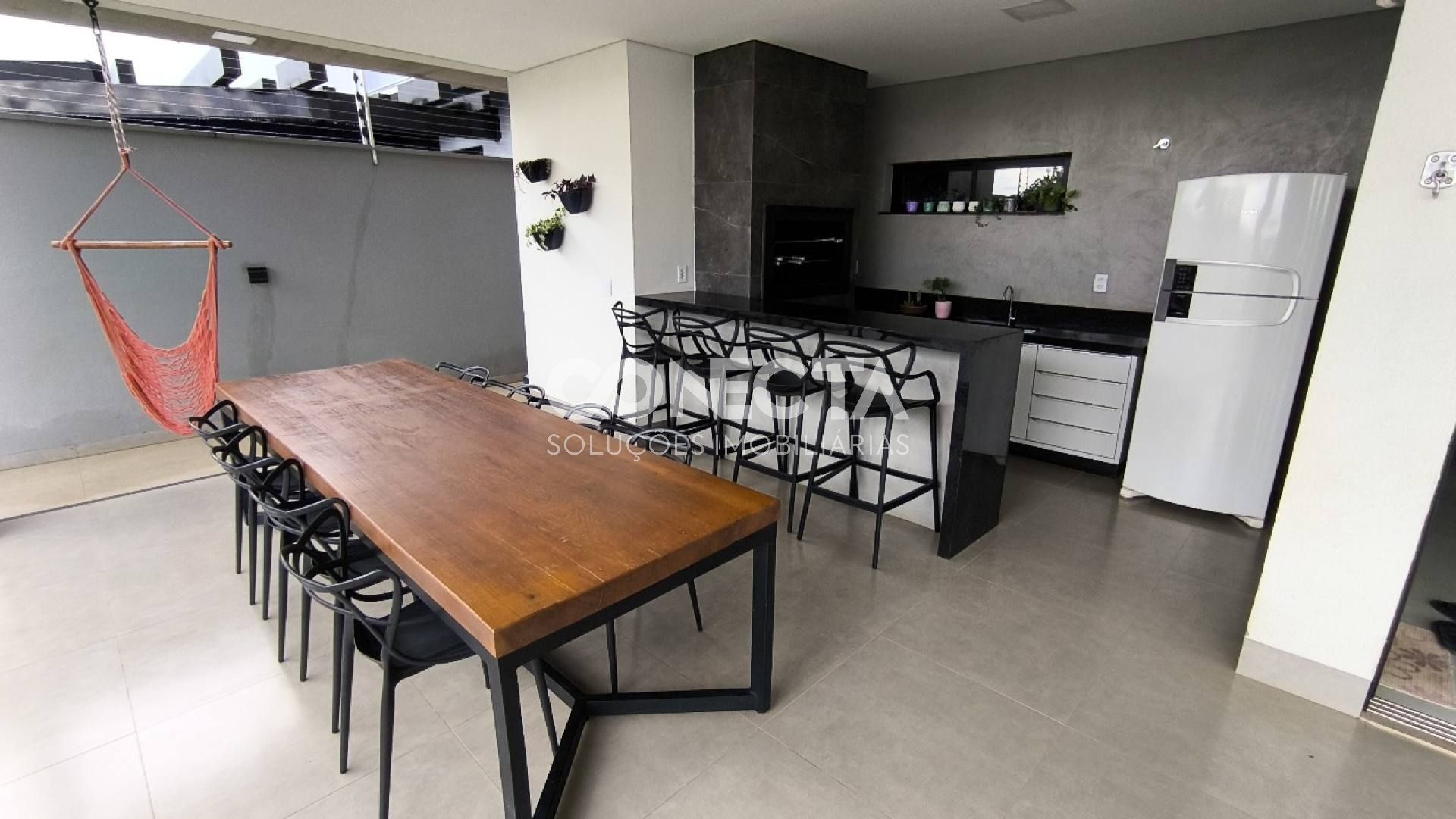 Sala ampla, cozinha e área gourmet integrada